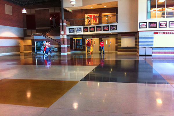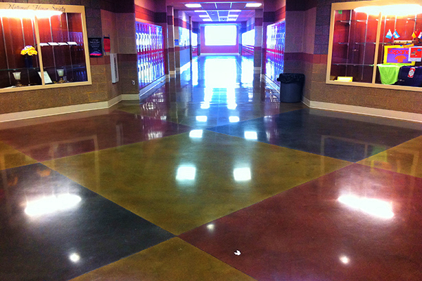 再加上彩色耐磨骨料或是其他染色材料,