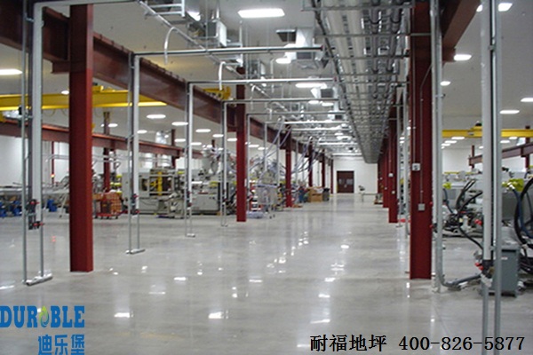 迪乐堡致密钢化剂是一种液体材料,由上海耐福地坪工程有限公司从国外引进,并且是不燃的A级防火材料。通过渗透到混凝土内部,与水泥中的化学成分发生化学反应所形成的生成物,能够填补水泥中的空隙,封堵毛细孔,从而形成密封的整体,阻止了车间地面起尘起砂。后期反应持续,经检测,地面的强度、硬度和耐磨度都得到了大幅度的提高,可以抵挡叉车以及重型物件的冲击和摩擦,车间地面的使用年限得到了增长。