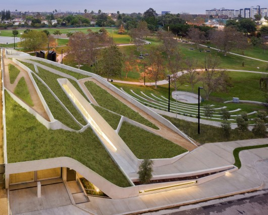 位于泛太平洋公园内,如此大体量的建筑与公园现有的景观融合,并在空间分布上达到了一个平衡