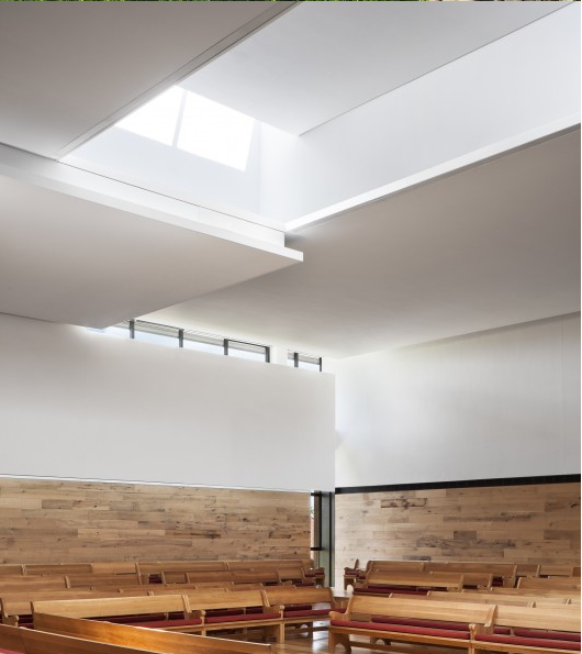 这个教会学校位于华盛顿,由一个1950年代的体育馆改建而来,打造成了一个静思的空间,加入了艺术展览与音乐设施。