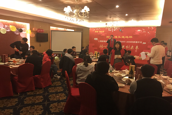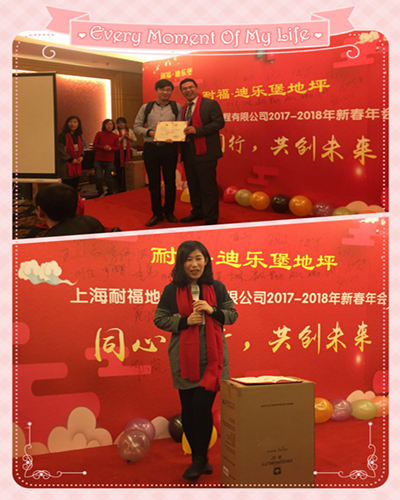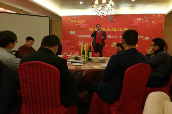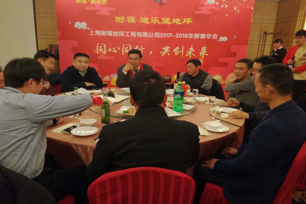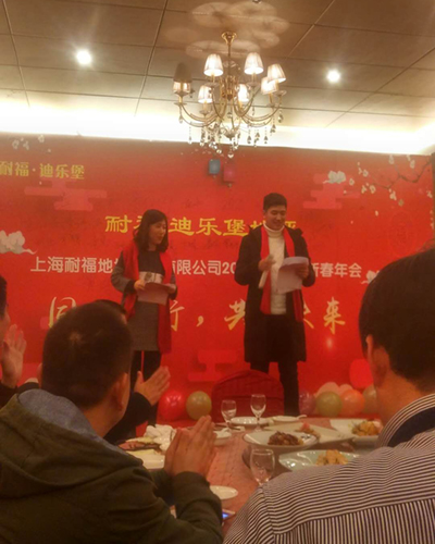 主持人宣布耐福·迪乐堡地坪新春年会晚宴正式开始。