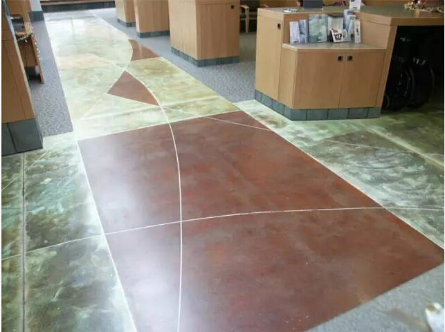 医院希望为他们的急救核心找到一种充满活力的,但是低维护成本的地面,并计划改造他们的大堂。起初客户考虑选择传统的染色和表面覆盖材料,但客户看到一个又一个失败的地面,很终客户选择使用她来处理他们的染色地面。这个项目分三个阶段,配合顶板,选用白水泥,以获得多种充满活力的颜色。很后是混合的多重染色。这三个阶段是在18个月时间范围内分别进行的,很终三个阶段都完满匹配。并且由于维护的方便性,医院希望所有楼层都使用染色结合她处理。