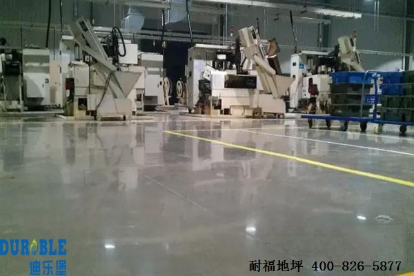 上海耐福地坪工程有限公司为重工业车间地面引进美国原装进口的混凝土密封固化剂,它能够渗透到混凝土内部5-8mm,与水泥中的偏硅酸盐发生化学反应,起到密封和固化的效果。而持续不断的化学反应,使内部毛细孔不断缩小,稳固内部结构分子,致使车间地面地面形成一个密实坚硬的整体。由于其表面被封堵,使得油污和灰尘都无法产生和通过,而且表面非常坚硬且强度高,耐砸耐刮,在表面不会留下痕迹。