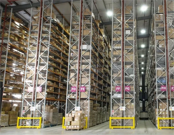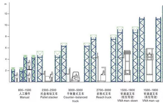 平整的地坪,使叉车能够从更高的货架上取货,并能有效地将标准屋顶高度提高到32至38英尺(9.6m-11.4m)之间。事实上,90%的建筑物现在都采用导线导向系统以取代原先的红外导向系统,这种系统可以帮助司机驾驶叉车,在6英尺(约1.8m)宽的巷道内自动引导叉车行进,行进同时可调整货叉伸向托盘。