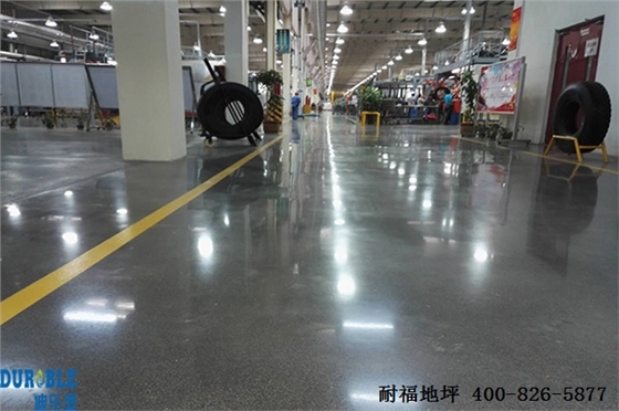 上海耐福地坪工程有限公司推荐的迪乐堡钢化地坪,它是是一种绿色环保、无味、不燃的高科技水性化学材料,其主要成分为水和聚硅化合物,混凝土密封固化剂处理后能完全渗透到混凝土中,通过与混凝土中的钙、镁等离子发生化学反应,生成坚硬的结晶物质,使得水泥中凝胶结构增大增强,使得混凝土中的各成分固化为一个密实的整体,使得混凝土中的凝胶空隙变小,封堵了混凝土的毛孔,增加了混凝土的密度,从而使得混凝土地面的强度、硬度及耐磨性大幅提高,达到防尘、坚硬、耐磨、易清洁的使用功能,车间地面处于致密的状态,不易被外界所破坏,自然就不会起灰了.