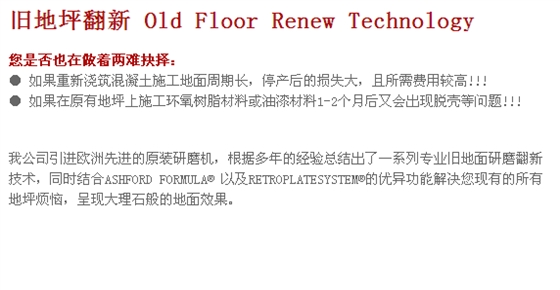 经机械竣光后的混凝土地面使用ASHFORDFORMULA–安斯福妙乐3至6个月后会出现打蜡般的光泽,硬度随时间增长而增加,是原先地坪的2-3倍。无需打蜡,为您节约大量的维护费用。