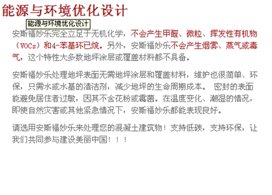 如果您对安斯福妙乐混凝土密封固化剂感兴趣或想深入了解,可免费拨打:400-826-5877,耐福地坪专业销售团队为您提供及时专业的安斯福妙乐混凝土密封固化剂服务!