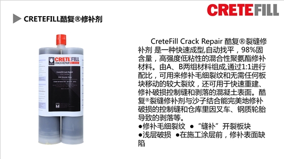 CreteFill酷复裂缝修补剂专业研发用于修补地坪表面的毛细裂纹