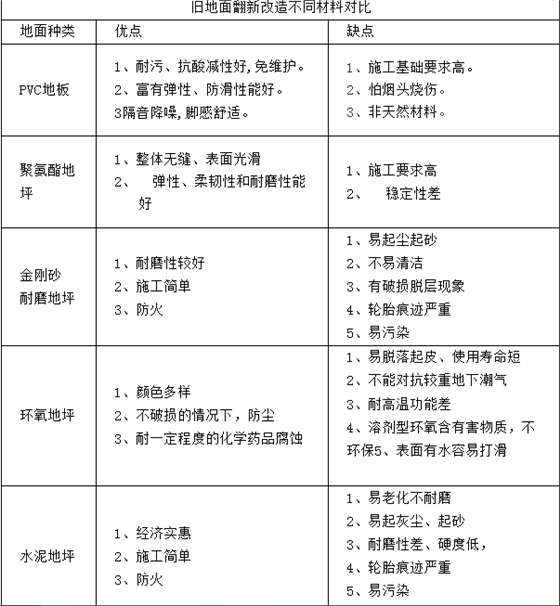 旧PVC地板翻新改造的各种地坪材料的对比: