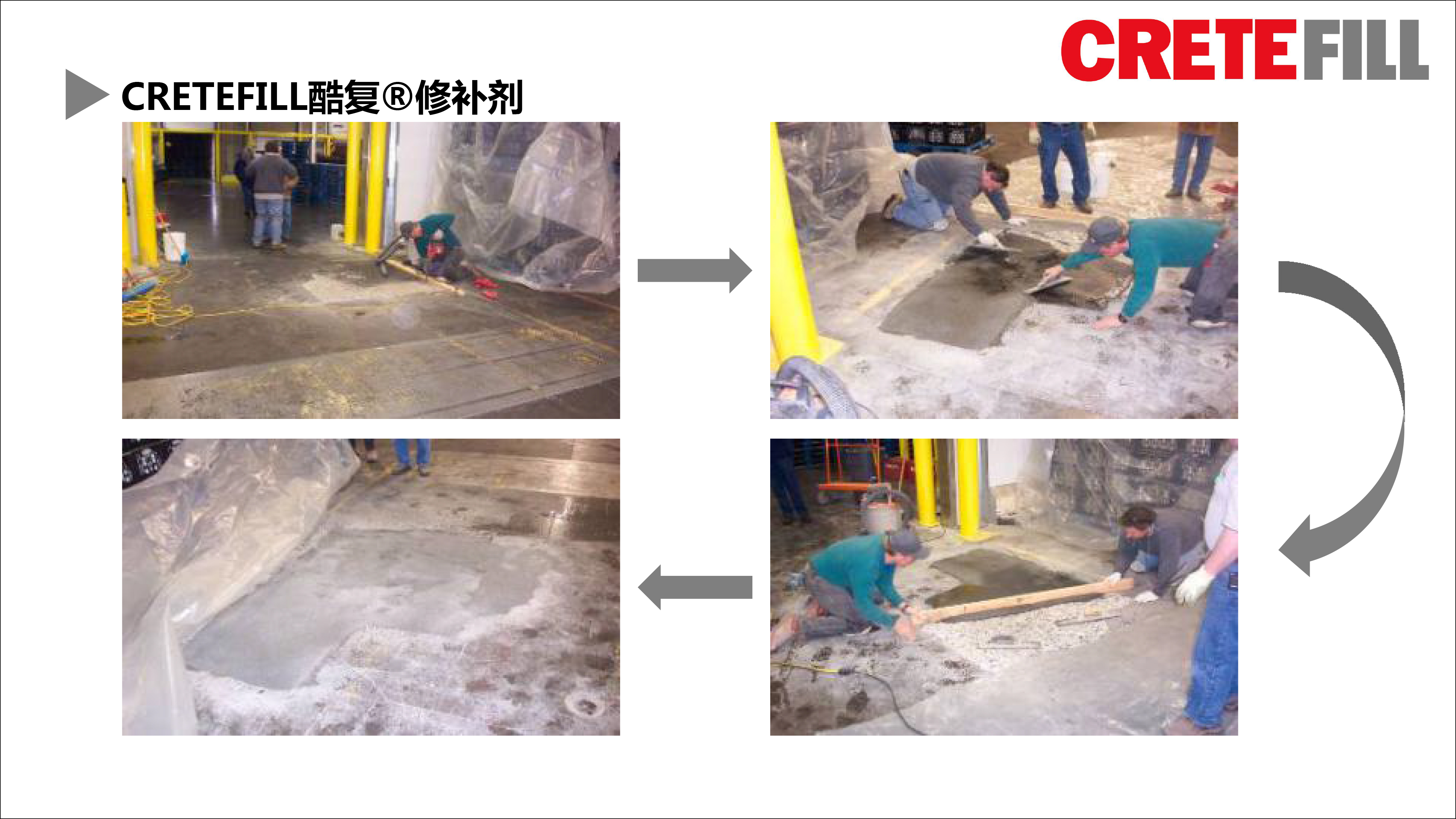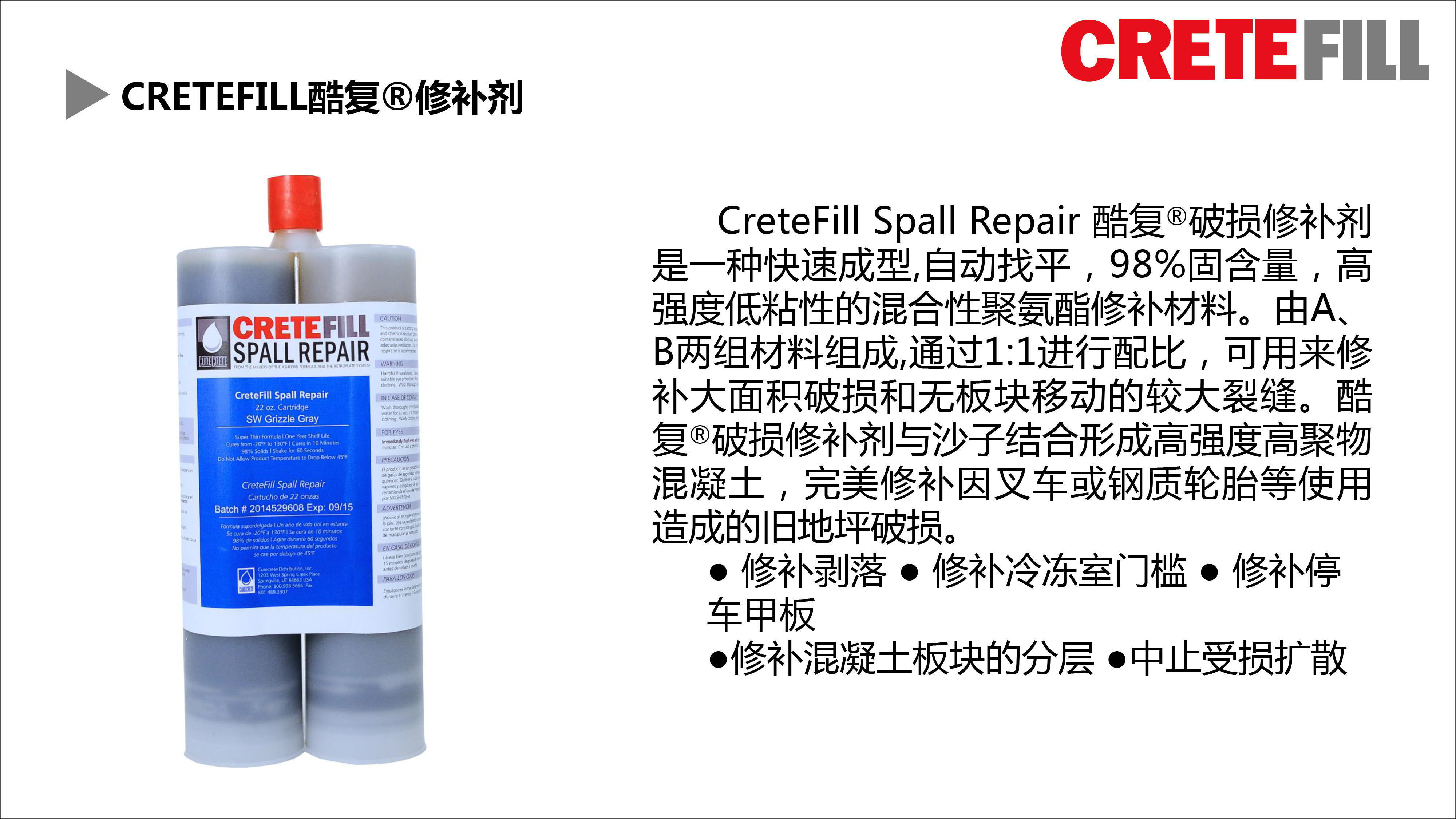 CreteFill酷复破损修补剂专业研发用于修补破损的切割缝和面层较大的裂缝、破损等