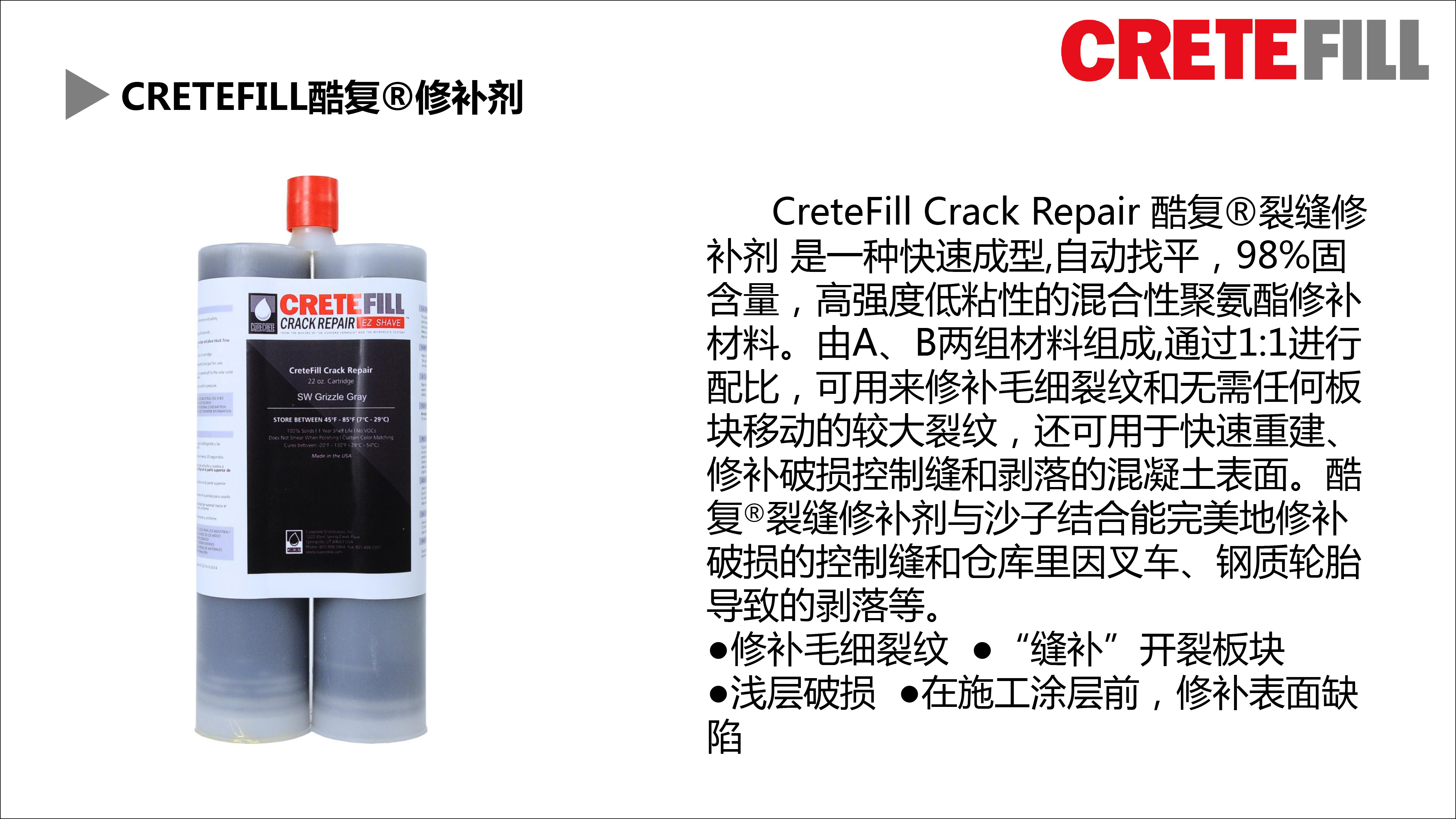 CreteFill酷复裂缝修补剂专业研发用于修补地坪表面的毛细裂纹